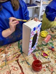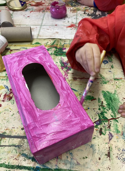 Die Kartons malt ihr zuerst weiß an, dann leuchtet die Farbe später viel schöner.