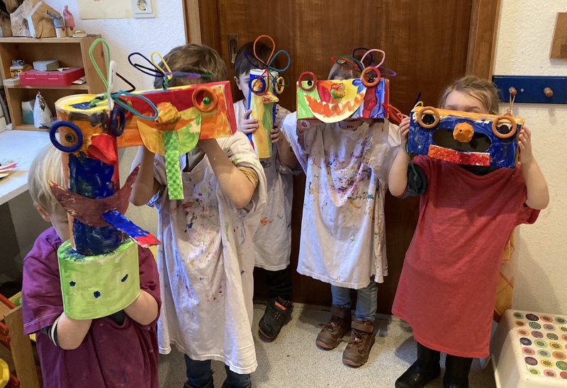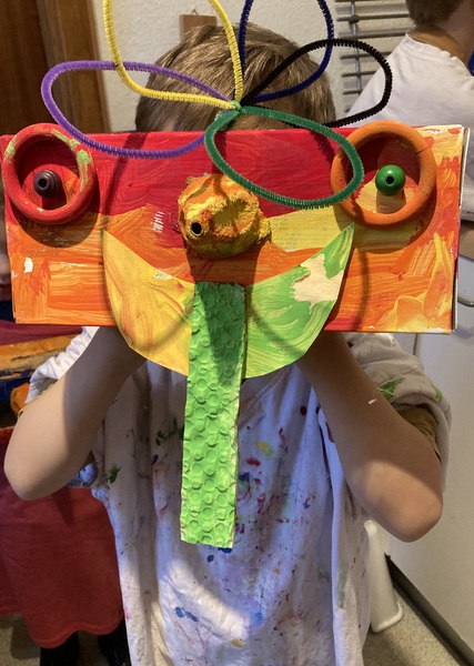 Dann sucht ihr ganz nach eurer Fantasie Dinge heraus, die ihr für eure Maske braucht und malt sie nach euren